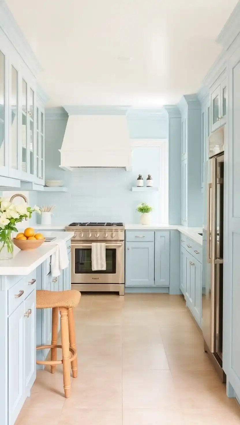 Incorporate pale blue cabinetry or walls paired with white countertops for a fresh, airy feel.