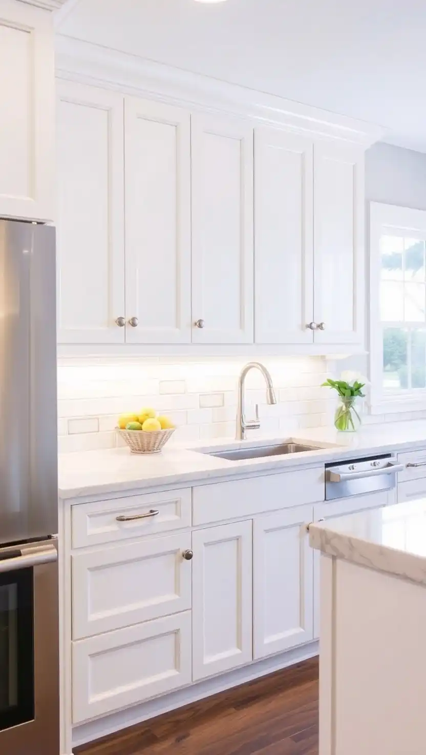 White shaker cabinets are a coastal kitchen staple, offering a clean, timeless look that reflects beachside brightness.