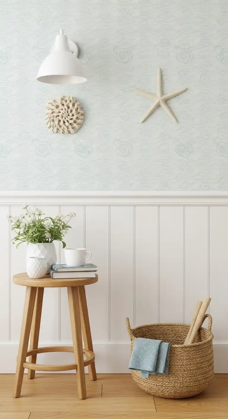 Wallpaper with subtle coastal patterns, like waves or seashells, adds charm without overpowering the space.