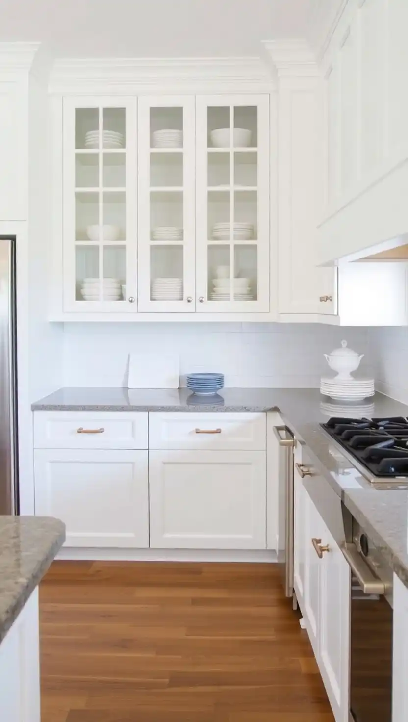 Glass-front options enhance openness, perfect for displaying coastal-themed dishware.