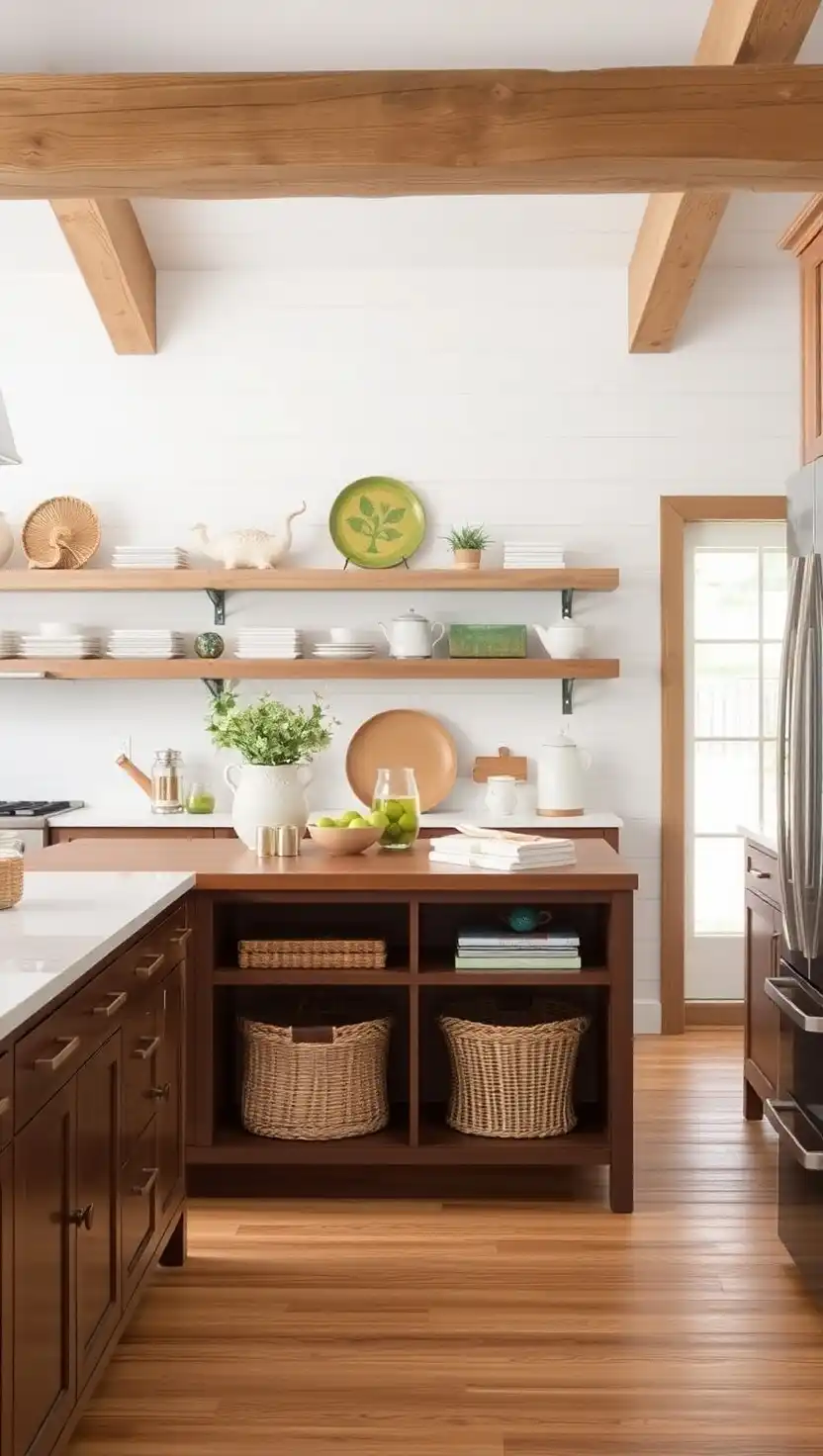 This setup keeps the kitchen functional while enhancing its relaxed aesthetic.